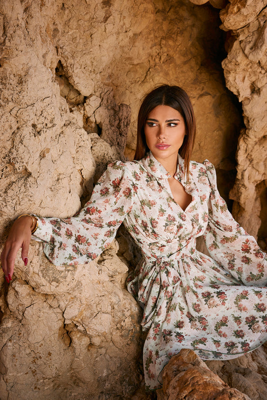 The romantic drape of this minidress from CILEM TUNC is balanced by its invigorating floral print. Made from chiffon, the sheer design has a high bottomed neck and blouson sleeves.