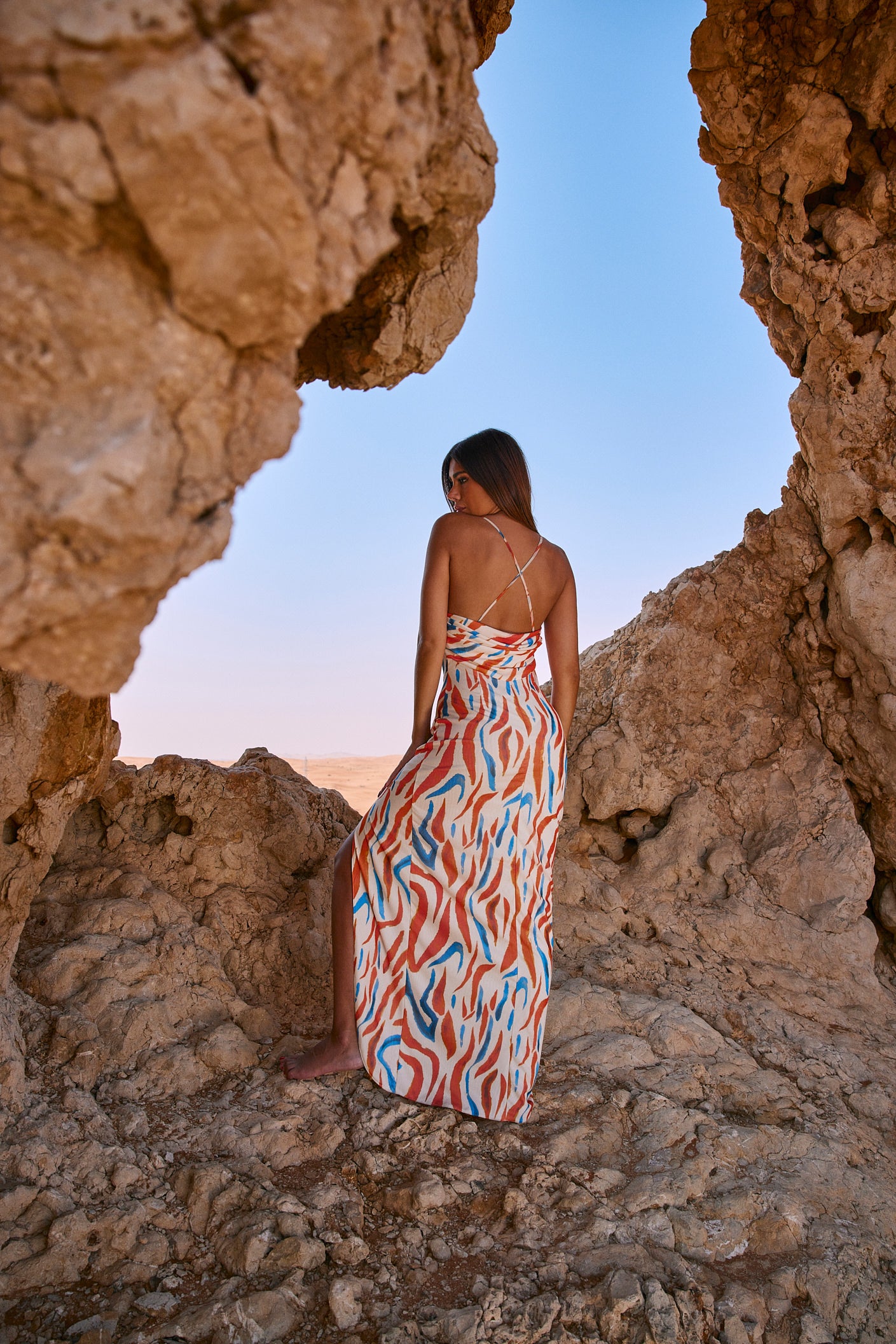 Prepare for your next walk along the beach with this striped long stretch dress from CILEM TUNC. This colorful design is ready to be the to-go item of your summer wardrobe.