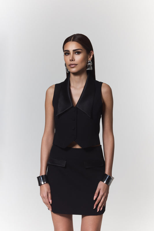 Looked elegant in a sleek black custom-made dress by Cilem Tunc.