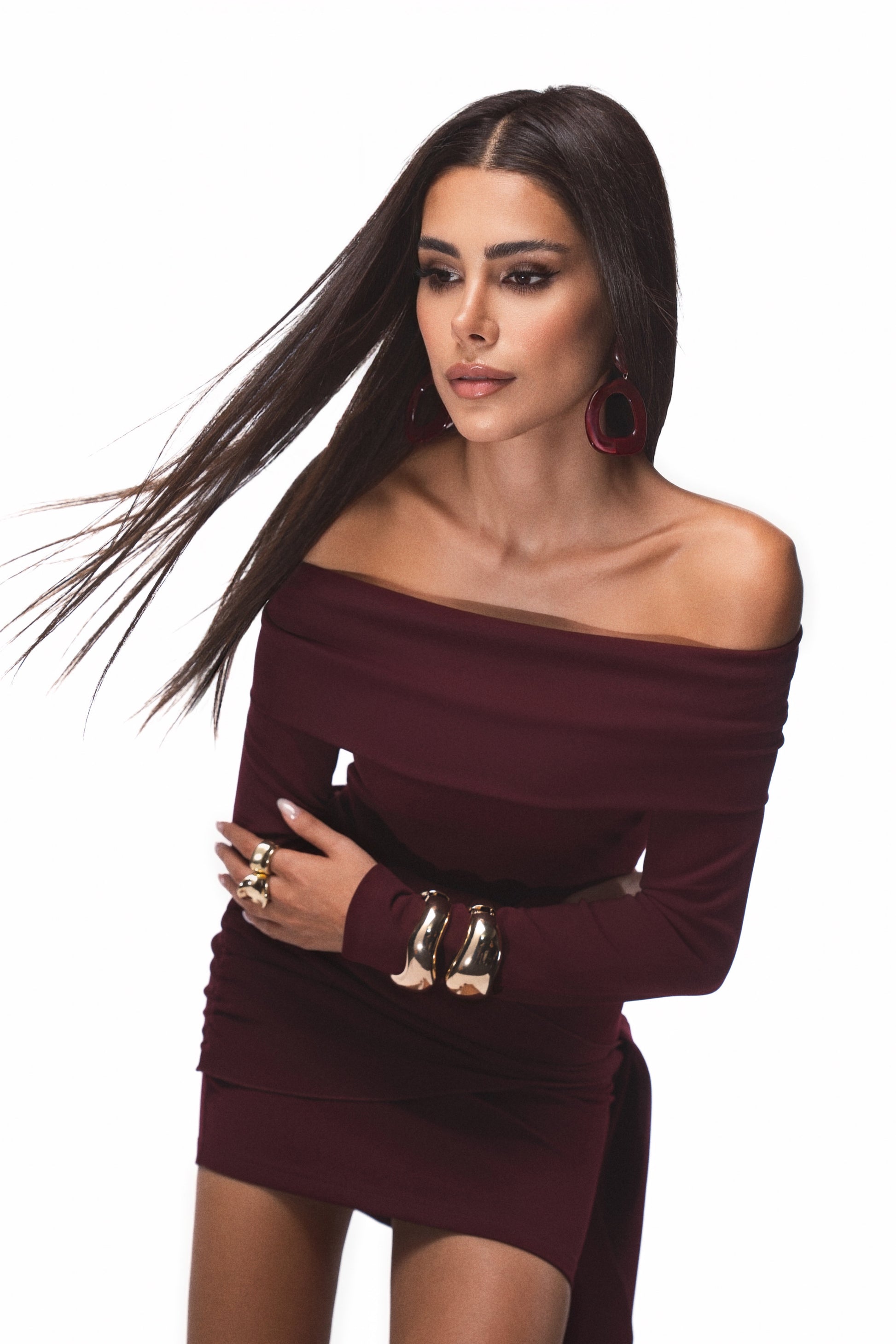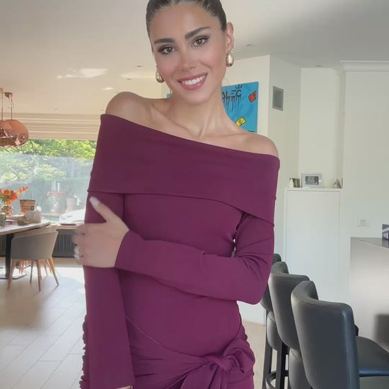 Make a bold and elegant statement with our Burgundy Off-Shoulder Knot Dress, the ultimate blend of sophistication and allure. This figure-hugging dress features a rich burgundy hue that flatters every skin tone and adds a touch of refined drama to your look. The off-shoulder neckline beautifully frames your décolletage, while the ruched design enhances your natural curves for a sculpted silhouette.